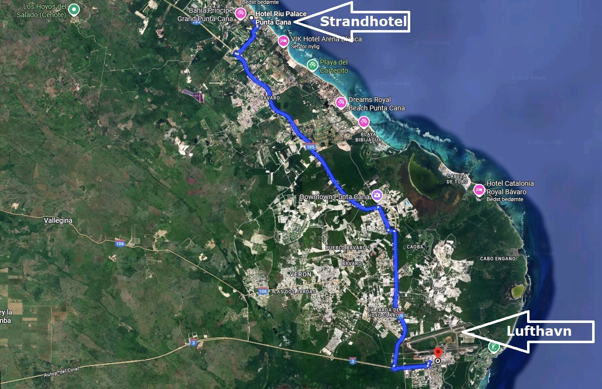 Klik - her - eller under teksten for at komme videre. Hotel Riu Palace Punta Canas placering - Se lufthavn!