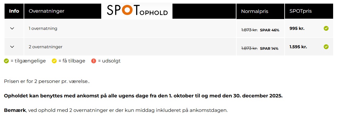 Et SPOT-ophold på danske kroer er et særligt tilbudskoncept, som typisk sælges gennem platformen SPOTdeal.dk eller lignende deal-sider. Det er en form for pakkeophold, hvor du får en samlet oplevelse til en nedsat pris – ofte på små, hyggelige kroer og hoteller rundt om i Danmark.
