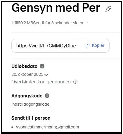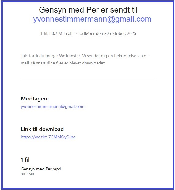 Tjek din indbakke: Du bør finde en e-mail fra WeTransfer med en bekræftelseskode.