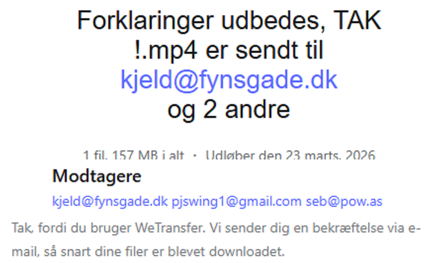 Klik - her eller under teksten for at komme videre! Filoverførsler med WeTransfer. Sådan ser det ud:
