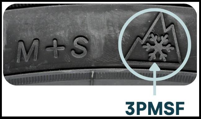 helårsdæk med alpinsymbolet (3PMSF = “Three Peaks Mountain Snow Flake”, som
