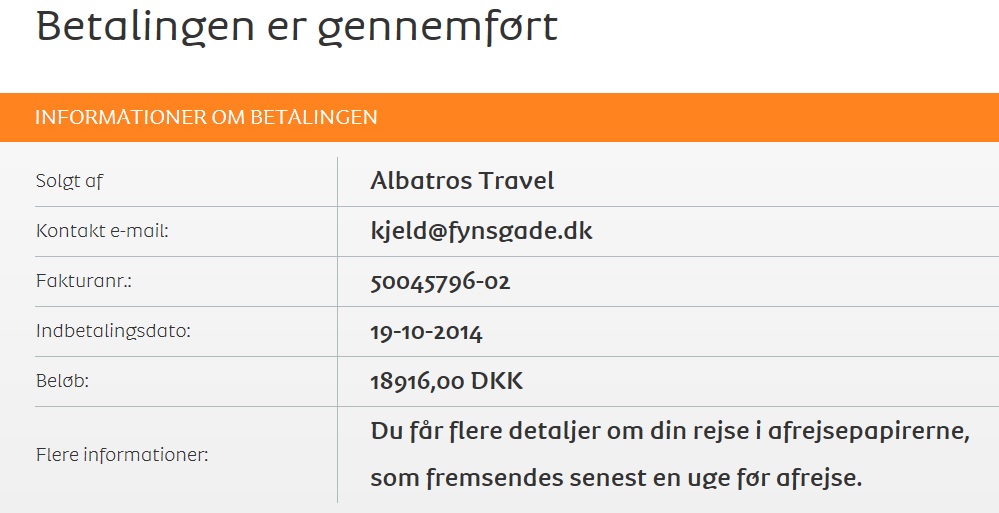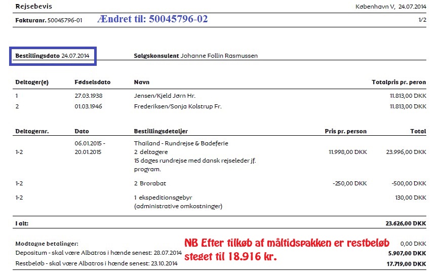 NB! I september, 2014 blev der tilkøbt 2 stk. måltidspakker á 798 kr.