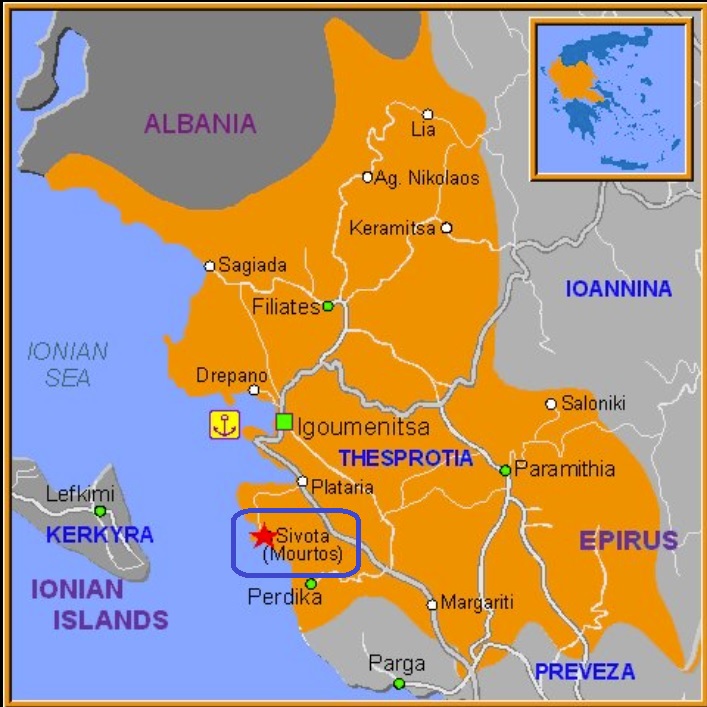 Det ligger cirka 24 km syd for havnebyen Igoumenitsa. panoramasivota.gr+1