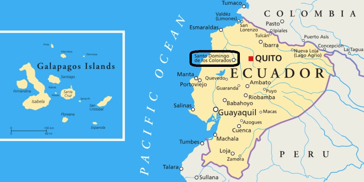 at "Santo Domingo de los Colorados er centrum og ligger i hjertet af landet. Det