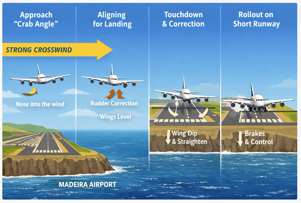 Pilots! AIRBUS A380 EMIRATES Airways crosswind landing at Madeira International