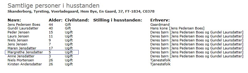 Oldemor på mors side: Margrethe Jensdatter dokumentation -