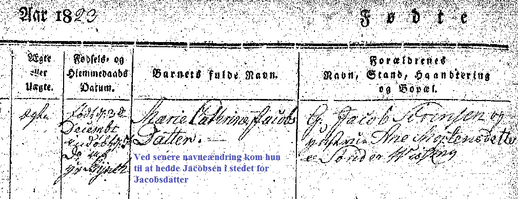Klik - her - eller under teksten for at komme videre. Oldemor på fars side: Marie Cathrine Jacobsdatter dokumentation
